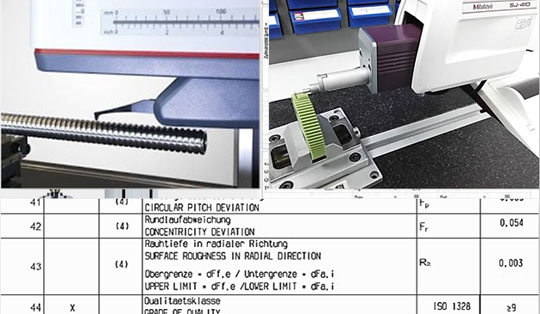 MITUTOYO SUEFTEST SJ-41D表面粗糙度測量系統來檢驗齒輪外形表面粗糙度,測試結果JIS(JISB0601-2001,JIS-B0601-1994,JISB0601-1982),VDA,ISO-199以及ANSI。除計算結果外還可以顯示組合計算結果和評估輪廓,負載曲線以及振幅分配曲線。