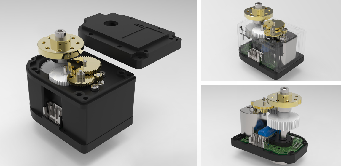 產品說明:其設計原理是通過行星齒輪模組作用于舵盤的轉動。控制電路板接受來自信號線的控制信號, 控制電機轉動, 電機帶動一系列齒輪組,減速后驅動至輸出舵盤。 舵機的輸出軸和位置反饋電位計是相連的, 舵盤轉動的同時,帶動位置反饋電位計,電位計將輸出一個電壓信號到控制電路板,進行反饋,然后控制電路板根據所在位置決定電機轉動的方向和速度, 從而達到目標停止。當航模需要做傾斜動作時,操縱所述舵機進行傾動,通過拉桿與舵機相連的傾斜盤隨即傾動,同時設于傾斜盤上的變向盤、與變向盤連動的主螺旋槳、與主螺旋槳連動的下盤、設于下盤上的上盤、與上盤連動的副螺旋槳也同步傾動,從而改變傾斜方向,完成傾斜動作。即使受到外部干擾,也能及時恢復原來的平衡狀態。